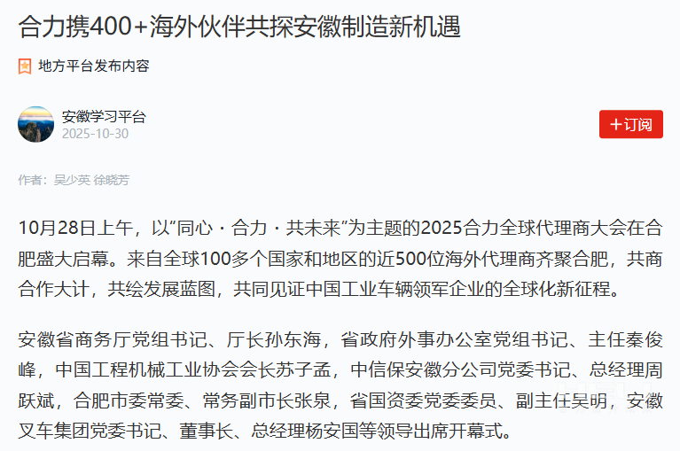 学习强国丨jc710公海赌船携400+海外伙伴共探安徽制造新机遇