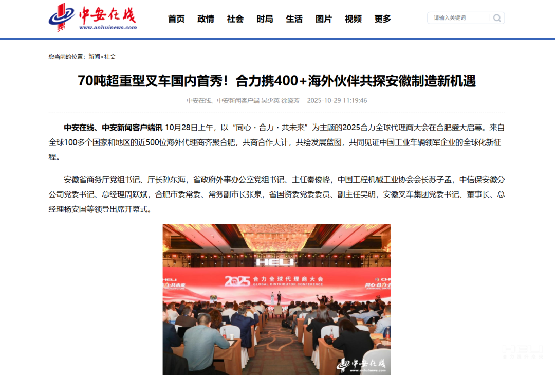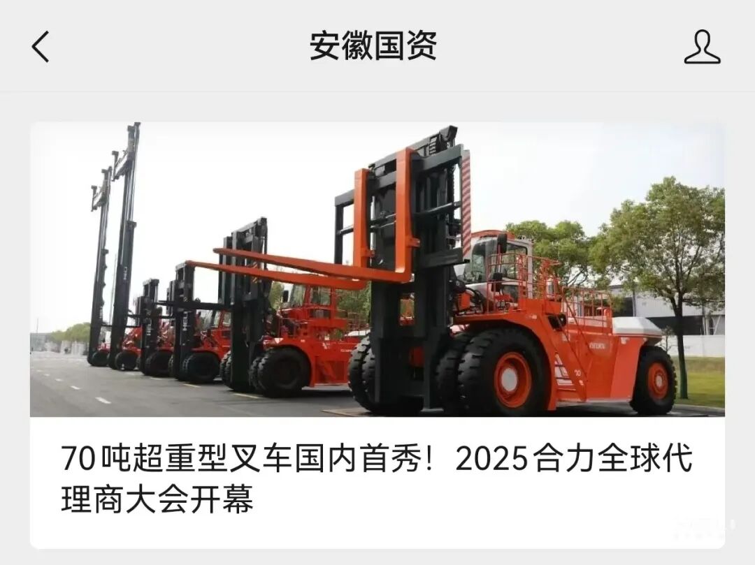 安徽国资丨70吨超重型叉车国内首秀!2025jc710公海赌船全球代理商大会开幕