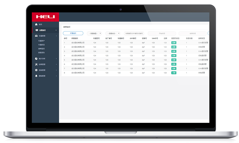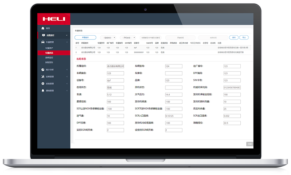 车辆故障状态及颗粒物排放浓度监控、故障代码显示。保障车辆运行安全。为车辆维保提供指导依据。